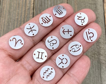 Stainless Steel Zodiac Connectors 12mm Round Links Charms All Months Horoscope Astrology Pendant Earrings Bracelet Yoga Mala Necklace Anklet