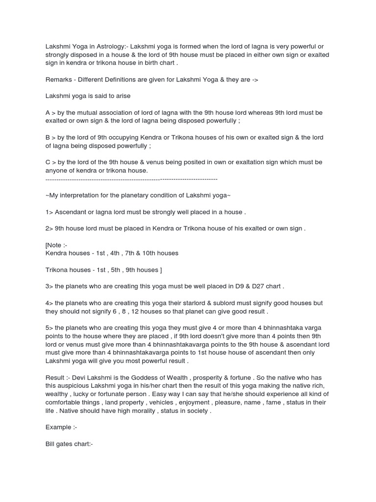 Laxmi Yoga in Astrology - Astropathshala The overall theme of the horoscope affects the strength of this Yoga, as per the Maha Laxmi Yog in Kundli. Laxmi Yoga occurs when the ruler of this house wields a powerful position in the Kendra or trikona. It is important for the lord of the 9th house to have an alliance with the ascendant lord in order to have a strong Laxmi Yoga.