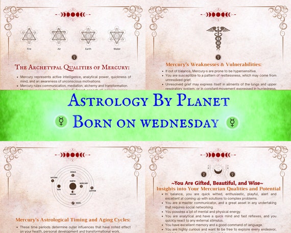 This is What Your Day of Birth Reveals About You - GOSTICA Wednesday is the Day of Mercury (Woden's Day - Odin's Day, the Norse god of Wisdom associated with Mercury/Hermes). The Wisdom and Agility of Mercury blesses the Child born on Wednesday with a very powerful and practical Mind. Curiosity is your second nature and you have a natural talent for business and communication. born on a wednesday astrology - 3 Best Astrology Readings in 2021 ... Most people that have taken advantage of the Grandmaster Astro-Tarot Reading have reported to have far better clarity and confidence in their decisions and also where they are heading in life. born on a wednesday astrology Pros: Fortune normally provides the reading relatively rapidly considering that it is by means of online channel. Days of the Week: Planet Rulers | Cafe Astrology .com Wednesday If you were born on Wednesday, you can be more attuned to the planet Mercury. Keywords for Mercury arecurious, communicative, and analytical. Mercury represents our communications and thinking processes. Wednesday-bornindividuals are interested, interesting, observant, and objective. What Does the Day of the Week You Were Born on Mean in ... - Astrology People born on Wednesday are communicative, versatile, curious. They are excellent at connecting with others, and they tend to be quite extroverted. They are very talkative. Born on Thursday Meaning This day of the week is ruled by Jupiter, the greater benefic and the planet of luck. People born on Thursday enjoy the blessings of Jupiter.