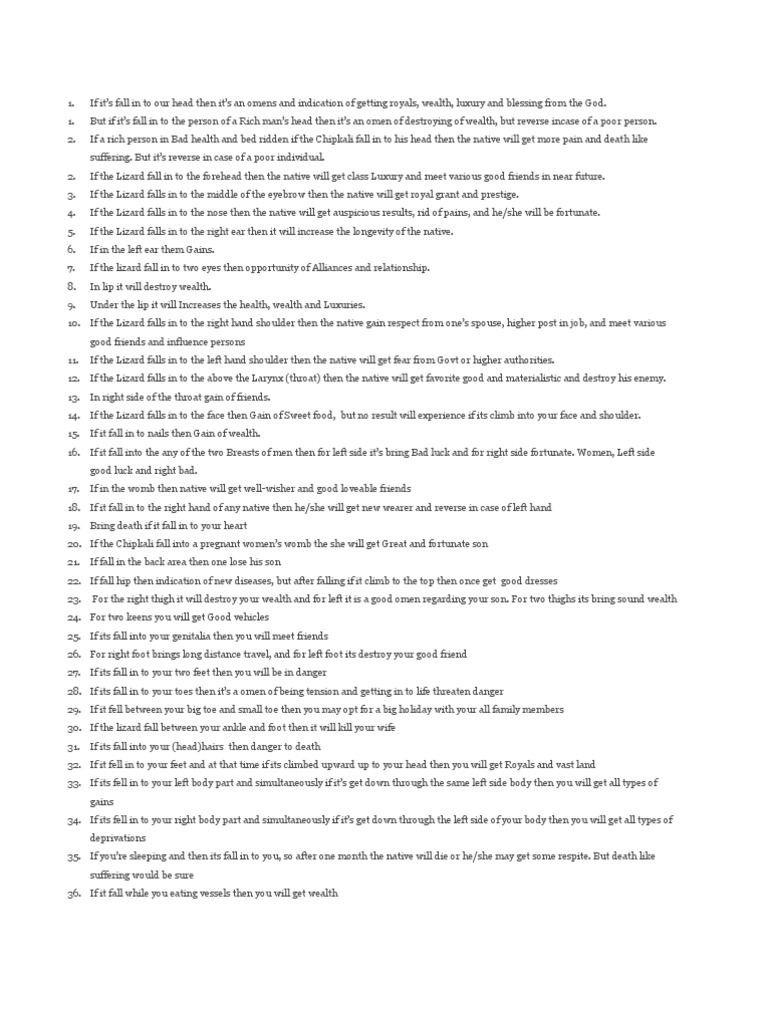 › designerindexFashion Designer Category Index - shopbop.com Shopbop offers assortments from over 400 clothing, shoe, and accessory designers. Shop your style at Shopbop.com! en.wikipedia.org › wiki › BatakBatak - Wikipedia After the lizard-shaped son of Mangalabulan, the husband the gods intended for her, had taken another name and another form, Sideak Parujar marries him. Sideak Parujar becomes the mother of twins of different sexes. When the two have grown up their divine parents return to the upper world leaving the couple behind on the earth. timesofindia.indiatimes.com › astrology › othersLizard Falling Meaning on Body Parts - The Times of India Dec 23, 2017 · Others News: Lizard Falling Astrology - The age old tradition in India has perceived the falling of lizard on humans as an omen since so long in history. Gowli Pathana Shastra is the segment of ...