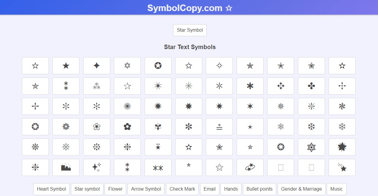 Copy And Paste Symbols Text Symbols & Emoji Copy and paste symbols is the only place to get all types of text symbols and emojis.You can easily search for any symbols like Heart, Flower, Smiley, Stars, Math, Unit, Currency, and much more.Click on any symbol to copy and paste it anywhere like Facebook, Twitter, Instagram, blogs, Youtube, and much more.. If you want to search for any symbol, you can use the search bar.