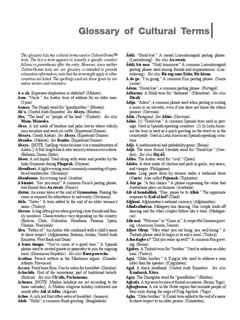 Glossary Cultural Terms | PDF | Foods | Entertainment (General)