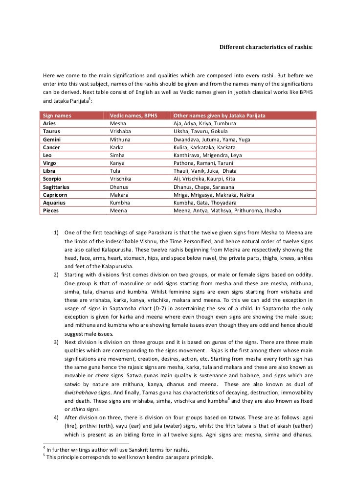 os.me › vedic-kundliFree Vedic Astrology Birth Chart Life Predictions/Calculator In Vedic astrology, each planet is assigned a certain function, each sign certain characteristics, and each house certain signification. Hence a horoscope can be delineated based on the synthesis of the position of planets, their mutual relationships, aspects, strengths, and significance of a particular house under consideration. Free Horoscope - Vedic Astrology - Indian Astrology, Hindu An interesting Vedic tale about Vedic Astrology Once upon a time, there was a learned Vedic Astrologer, well versed in reading the cosmic placements and interpreting their meanings. Celebrated and illustrious, his name and fame rose throughout the land and soon caught the attention of a mighty and curious Muslim king. Vedic Astrology And Rasi Characteristics [5143ewp22lje] Download & View Vedic Astrology And Rasi Characteristics as PDF for free. More details. Words: 16,990; Pages: 60; Preview; Full text; VEDIC ASTROLOGY RASHI Characteristics Aries / Mesh Rashi Taurus / Vrishabh Rashi