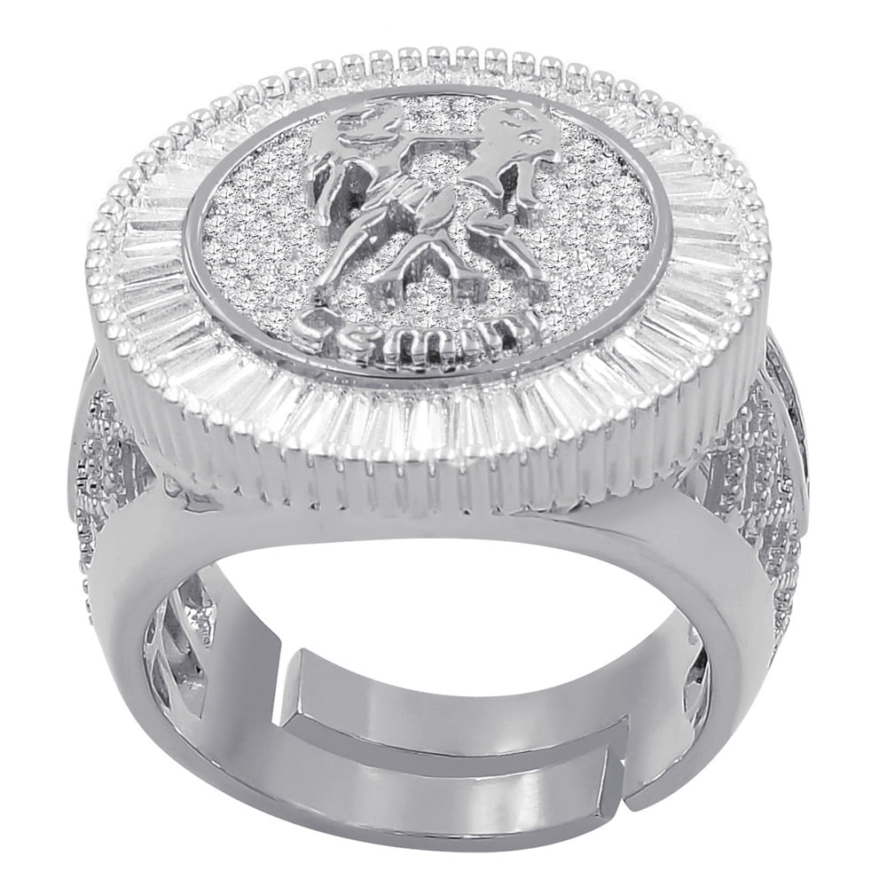 Mens 14K Gold Finish Aquarius Water Zodiac Sign Astrology Horoscope Ring Baguette & Round Cut Simulated Diamond Band