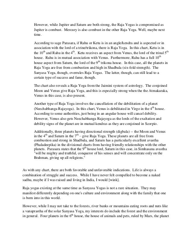 Sanyasa yoga in astrology. Sanyasa yoga in Vedic Astrology - Vedic Astrology Lessons Free Astrology 261. Articles 194. Monthly Horoscope 190. Vedic Astrology Lessons 149. Yogas in Vedic Astrology 104. Paladeepika by Mantresware 79. Panchang 70. Vedic Astrology Lessons Basic Concepts 57. Yearly Horoscope 51. What is the role of Sanyasa yoga in astrology? - Quora Answer (1 of 4): Hi, Sanyasa yoga in Astrology is also known as Pravrajya yoga. This is the combination that make a person inclined towards seeking the 'truth' and not necessarily be religious. All the planets except Rahu are capable to take a primary role in pushing a person towards this yoga o... Vienna Astrology Welcome to Vienna Astrology. Vienna empowers her clients with astrological interpretations that help them tap into their own wisdom and confidently make choices. For 50 years, Vienna has worked at interpreting astrological information. She believes there is an untapped and vast wealth of astrological insights to be mined, contemplated, and ... sanyasa yoga in vedic astrology - 3 Best Astrology Readings in 2021 ... Astrology Readings have been getting increasingly preferred recently with 30% of Americans claimed to rely on astrology as well as horoscopes. While lots of people understand what their zodiac signs are, few have the ability to utilize that to bring about positive adjustments in their life. sanyasa yoga in vedic astrology