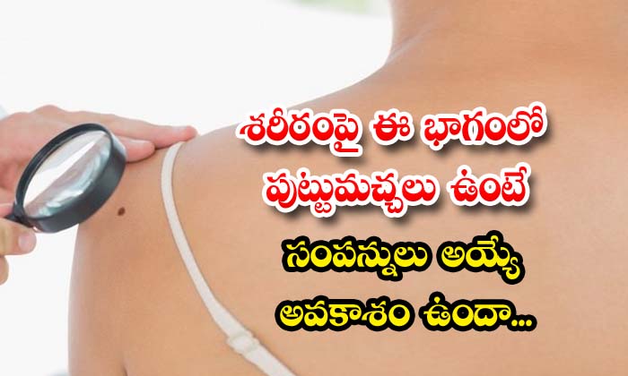 Moles and Signs: మహిళలకు ఆ భాగంలో పుట్టుమచ్చ ఉంటే..ఇక ఏం ... Aug 6, 2022 ... పుట్టుమచ్చ ఉంటే ఆ మహిళలు అత్యంత అదృష్టవంతులని అర్ధం. Astrology tips and moles signs, ... Moles In Astrology | Zee News Telugu Moles In Astrology: శరీరంలో ఈ భాగాల్లో పుట్టు మచ్చలుంటే నిజంగా మీరు అదృష్టవంతులే.. వీరికి డబ్బే డబ్బు.. Moles In Astrology: కుడి చేతి మీద పుట్టుమచ్చలు ఉన్నవారు నిజంగా అదృష్టవంతులే. వీరు...