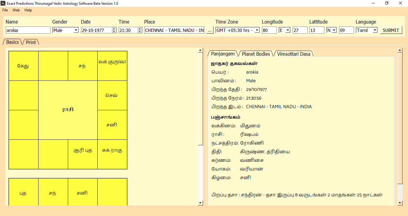 Exact Predictions Thirumagal Vedic Astrology Software Astrology Software Exact Predictions Thirumagal Vedic Astrology Software Exact Predictions Thirumagal Vedic Astrology Software By Exact Predictions Free Visit Site Developer's Description... Astrology Softwares - Mindsutra Astrology Softwares - Himalaya Vedic World Mindsutra Software Technologies is an assorted group of well-qualified, considerably experienced, liberal - yet very practical, and progressive-minded persons - who have an indomitable spirit and ever-optimistic outlook in common; they have been carefully ... Home / Astrology Softwares / Desktop and Windows. Product filters. Price ... Astrology - Exact Predictions Astrology in tamil | Tamil astrology | Jathagam | Jothidam | Tamil Jothidam | Tamil Jathagam | Tamil Horoscope | Tamil Rasi Palan | ஜோதிடம் ... Best Astrology Software for Windows - Techjockey Check out the list of Best Astrology Software For Windows. Compare all kundli software which supports Windows, its features, ease of use, and user reviews to ensure you find the right software that supports Astrology Software for Windows Pc.