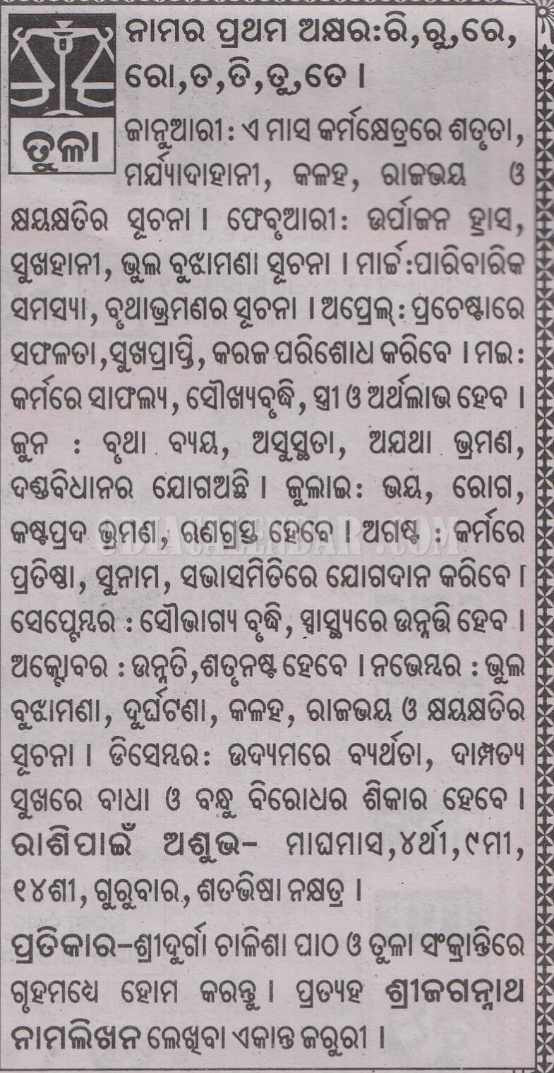 Astrology Daily, Monthly and Yearly Horoscope Prediction for Tula Rashi Daily, Monthly and Yearly Free Rashifal for Tula Rashi Moon Astro Brings Free monthly, yearly and Daily report for Moon Sign.This prediction is based on Indian Vedic Moon sign (Rashi) based astrology. Predictions are made considering your Moonsign and the effets of current transit alone with the current position of Moon.