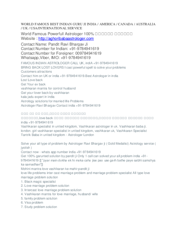 DOC) +91-9784941619 Love Problem Solution Tantrik Baba Ji | + ...